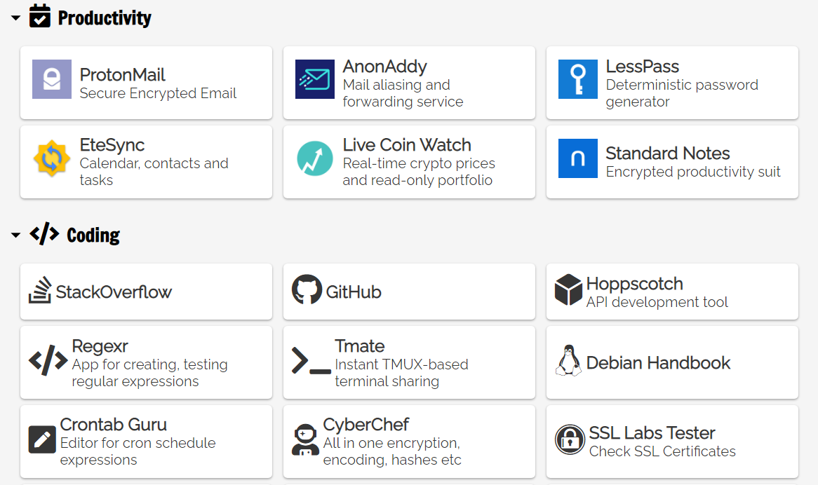 Both sections and items can have an icon, which is specified using the icon attribute. Using icons improves the aesthetics of your UI and makes the app more intuitive to use. Dashy supports multiple different icon providers, usage instructions for which are explained here.