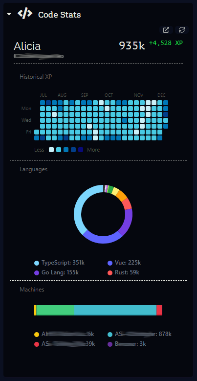 All config options that can be applied to sections, can also be applied to widget sections. For example, to make a widget section double the width, set displayData.cols: 2 within the parent section. You can collapse a widget (by clicking the section title), and collapse state will be saved locally.