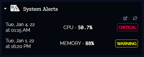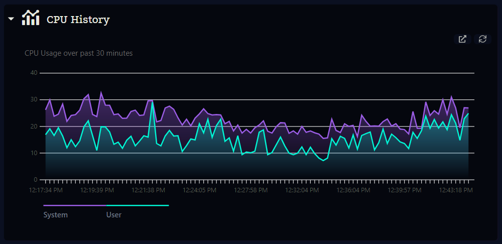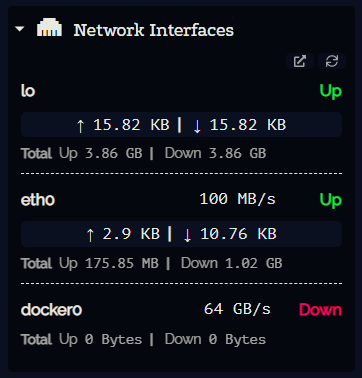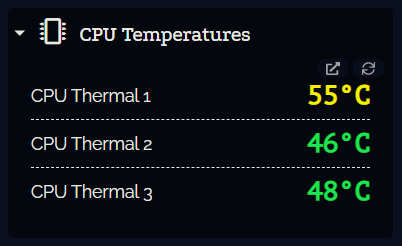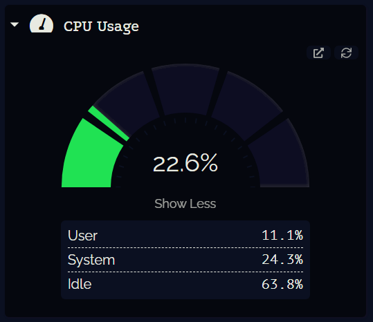 - name: CPU Usage icon: fas fa-tachometer widgets: - type: gl-current-cpu label: Meida Server options: hostname: http://media-server.lan:61208 - type: gl-current-cpu label: Firewall options: hostname: http://firewall.lan:61208 - type: gl-current-cpu label: File Sync Server options: hostname: http://file-sync.lan:61208Ignoring Errors#