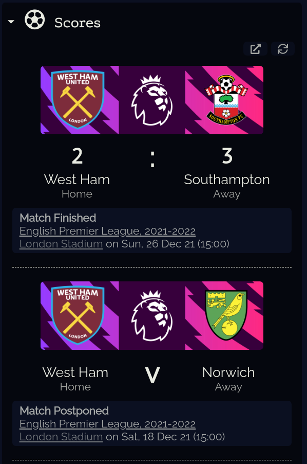--widget-text-color- Text color, defaults to--primary--widget-background-color- Background color, defaults to--background-darker--widget-accent-color- Accent color, defaults to--background