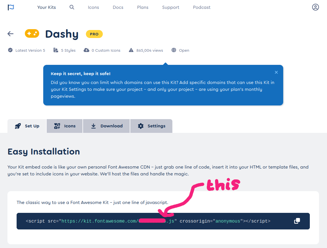 If you are trying to use a premium icon, then you must have a Pro License. You'll then need to specify your Pro plan API key under appConfig.fontAwesomeKey. You can find this key, by logging into your FA account, navigate to Account โ Kits โ New Kit โ Copy Kit Code. The code is a 10-digit alpha-numeric code, and is also visible within the new kit's URL, for example: 81e48ce079.
