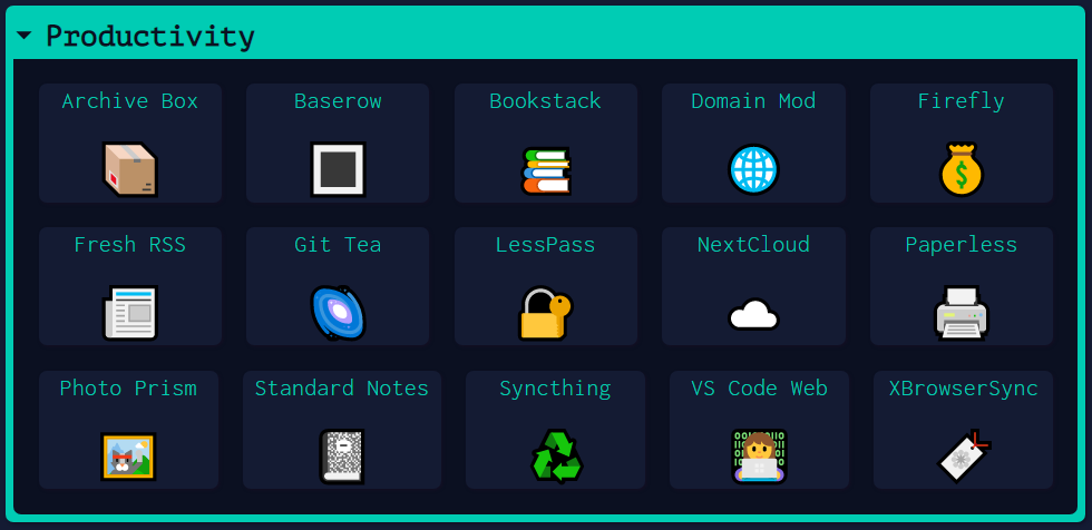 - Icons for Self-Hosted Apps - 350+ high-quality icons for commonly self-hosted services