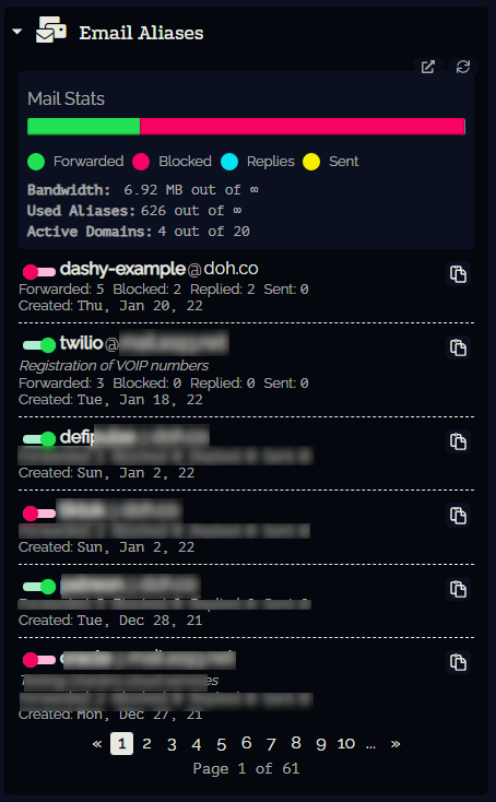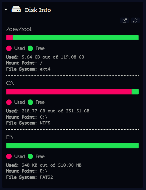 Dashy has support for displaying dynamic content in the form of widgets. There are several built-in widgets available out-of-the-box as well as support for custom widgets to display stats from almost any service with an API.