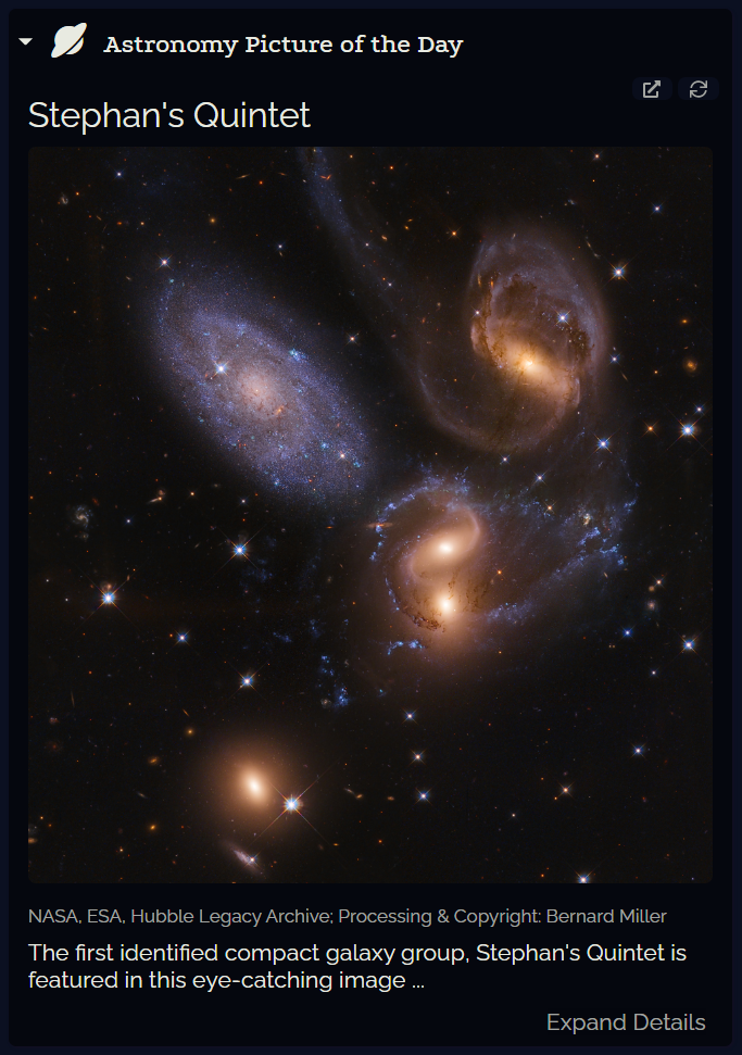 Widgets can be opened in full-page view, by clicking the Arrow icon (top-right). The URL in your address bar will also update, and visiting that web address directly will take you straight to that widget.