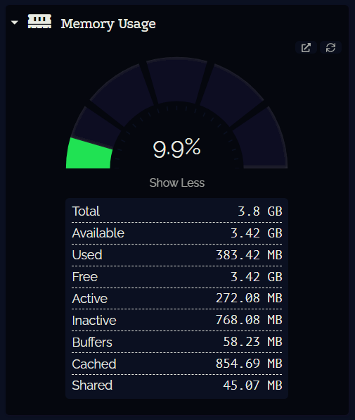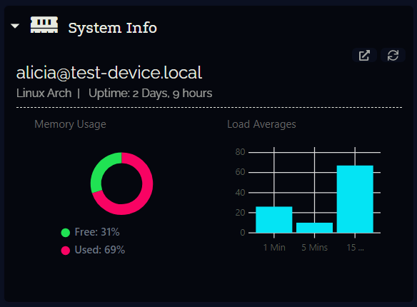 - name: CPU Usage icon: fas fa-tachometer widgets: - type: gl-current-cpu label: Meida Server options: hostname: http://media-server.lan:61208 - type: gl-current-cpu label: Firewall options: hostname: http://firewall.lan:61208 - type: gl-current-cpu label: File Sync Server options: hostname: http://file-sync.lan:61208Ignoring Errors#