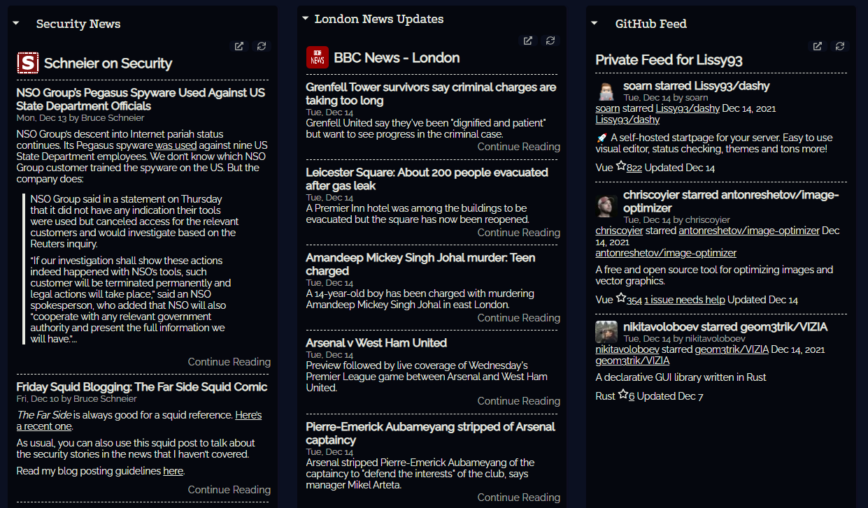 Many websites and apps provide their own embeddable widgets. These can be used with Dashy using the Embed widget, which lets you dynamically embed and HTML, CSS or JavaScript contents.